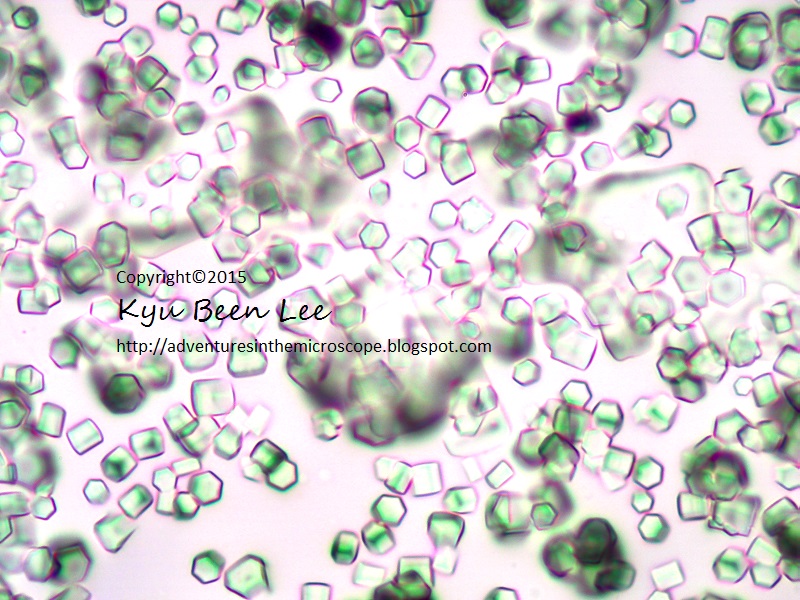 Well yes that is true, normally the salts we use at the dinner table are white. However when looking at it through a microscope, the light shining beneath actually reflects in the salt and thus gives it the unusual color we don't see everyday in salt.